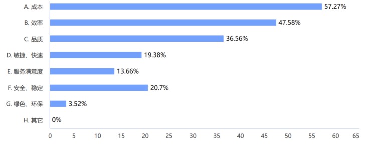 (2)在连续多年的调研数据中,绩效侧重点首选始终是“成本”指标。实际上,中国制造企业一直在不断寻求成本和效率的最佳平衡点,来追求与维持在全球供应链中的战略地位。