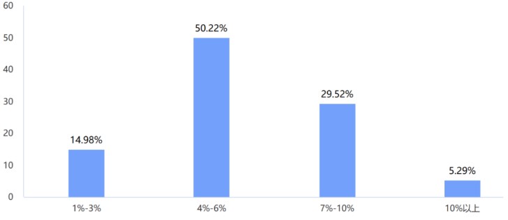 接近80%的公司在创新方面的投入占比营业额在4%~10%之间,约5%的公司投入达10%以上。见图14。