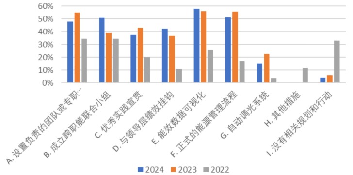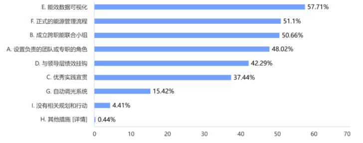 超过一半的企业在“能效数据可视化”“正式的能源管理流程”“成立跨职能联合小组”方面有规划和行动。见图17。
