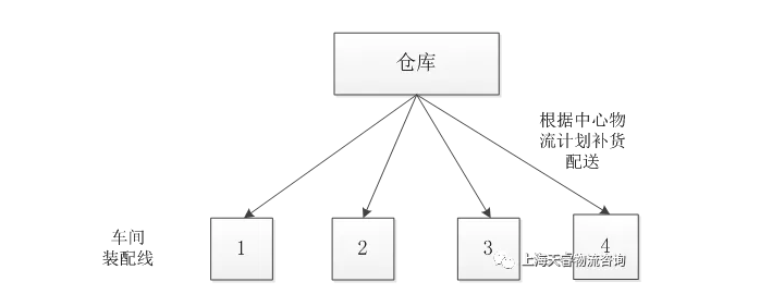 中央发货是一种推式的物流模式,即直接根据主生产计划来计算车间物料需求,定期将物料从中央仓库配送到车间。这种方式的优点是管理简单、操作简洁,缺点是不考虑车间装配线的实际情况导致库存高。虽然随着生产方式的改变,这种物流模式已经逐渐被淘汰,但是从物料分析的角度来看,目前有些情况还是适合应用该模式的。
