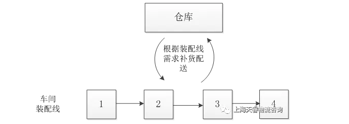 直送上线包括两种模式:JIT(Just in time)和JIS(Just in sequence)。JIT是指及时配送,根据装配线的生产计划以及实时情况,从供应商或配送中心提前备货保证在车间装配线需要该物料的时候刚好送到指定位置。JIS是在JIT模式的基础上发展而来的,在及时配送的基础上再补充对所有配送物料的顺序确定,即在备货时候考虑物料在装配线流水线上的顺序,按照顺序拣选并配送物料,效率更高,更加密切配合装配线的均衡生产。直送上线主要考虑物料的备货提前期和装配线的节拍,来设定一个固定的配送频率或者配送时间点。目前很多制造行业都开始应用这种模式,但是各个工厂车间特点不一样,具体的设计也有所差异。