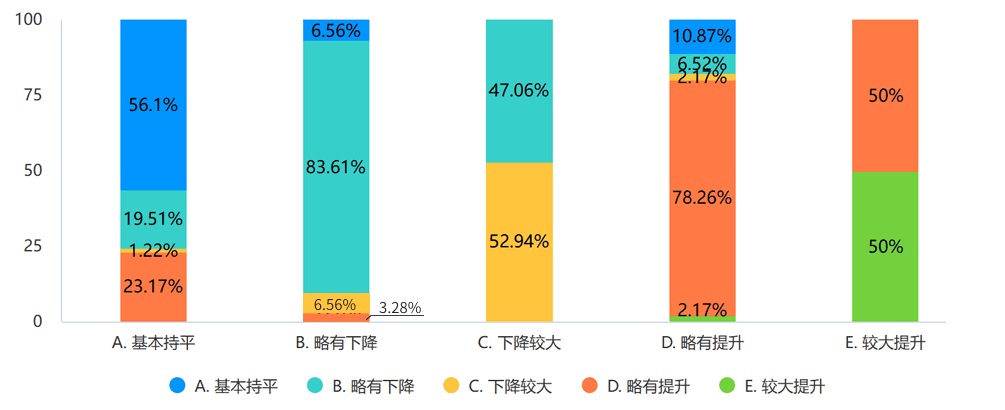 (1)过半企业谨慎的态度是基于当前全球经济形势的复杂性,包括市场需求的变化、供应链中断的风险、成本上升等问题。乐观预期主要源于企业对于新技术应用带来的效率提升抱有期望。