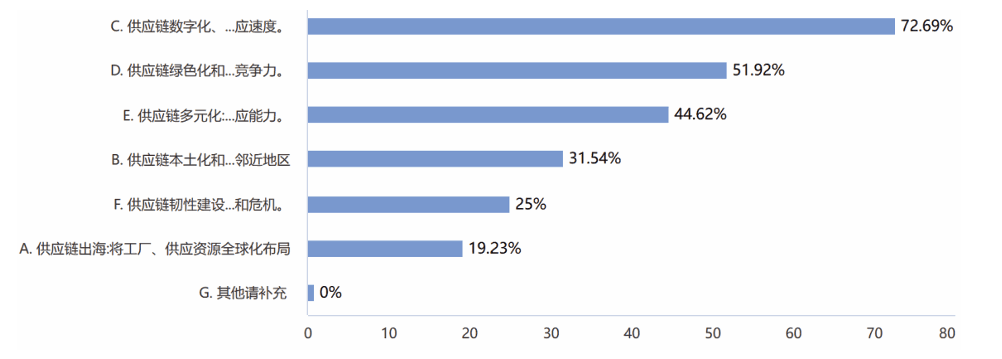 (3)供应链数字化、智能化,供应链绿色化和低碳化,供应链多元化,这些战略方向的选择反映了企业对未来市场环境的应对和准备。