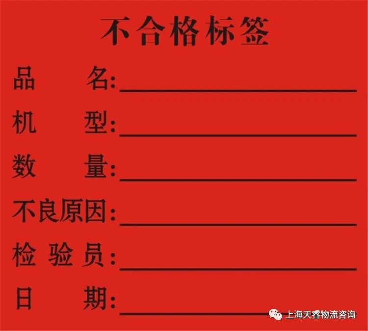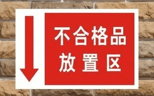 **在企业里,一般采用“绿色”作为合格的标志,“红色”作为不合格标志,“黄色”作为待检或可疑标志。**不合格的物料用红色标签张贴在外包装上,一般使用在物料入厂检验和产品发运阶段,生产阶段一般使用红色容器放置不合格零件或产品。**如果发生批量的不合格品,企业会使用红色绳带进行围拦。**有的企业物件比较大,就在地面上划出一块红色区域,专供摆放不合格品。企业的物流区域对不合格品的标识规定与生产区域大致相同。