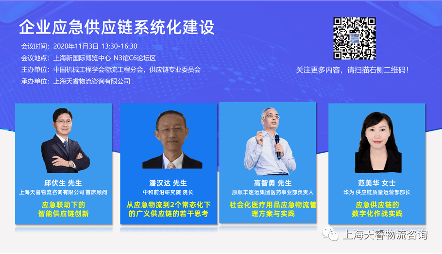 2020年11月3日,中国机械工程学会物流工程分会主办的“企业应急供应链系统化建设”研讨会在上海CeMAT ASIA展会期间召开,聚焦疫情暴露的供应链脆弱性问题。会议汇聚行业专家与实践企业,探讨应急供应链的数字化、协同机制与常态化建设路径。该活动由上海天睿物流咨询有限公司承办,面向制造与物流高管免费开放。
