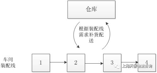 物流模式从大的方向来看,主要分为推式和拉式:推式主要是根据中心的物流计划直接将物料配送到车间或装配线如下图1所示;拉式是根据车间装配线的需求拉动将物料配送到装配线,如下图2所示。