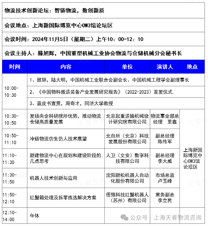 11月5日上午场,“智链物流,数创新质”物流技术创新论坛聚焦于物流技术的创新与应用,将探讨物流系统的智能化升级技术、供应链的协同与整合、以数据为驱动的高效管理模式、物流装备行业在数字化转型和创新驱动下的新趋势和新要求。