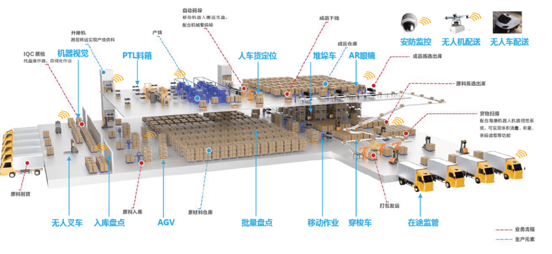 **抛开智能产品、智能研发、智能服务、智能销售等企业层面的智能要素,****仅从工厂运营的角度来看,智能工厂可以理解为供应链计划、智能生产和智能物流的组合和融合。**智能生产包括数字化智能化设备、岗位操作智能化、机器人应用、智能检测、智能产线、3D打印、相关控制和信息系统等要素和技术的应用。智能物流包括采购物流、生产物流、销售物流及各环节智能仓储系统、智能输送系统、智能单元技术、RFID技术、智能分装技术、智能拣选技术、相关控制和信息系统等要素和技术的应用。智能生产和智能物流通过供应链计划的协同实现有效的融合,从而构成了智能工厂。