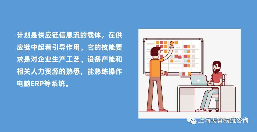 **1、计划是供应链信息流的载体,在供应链中起着引导作用。**它的技能要求是对企业生产工艺、设备产能和相关人力资源的熟悉,能熟练操作电脑ERP等系统。
