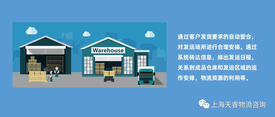 **通过客户发货要求的自动整合,对发运场所进行合理安排。**通过系统转达信息,排出发运日程,关系到成品仓库和发运区域的运作安排,物流资源的利用等。当计划系统运行正常,执行及时有效,物流运作安排就有序有效。反之会引起混乱,迟滞发运,浪费资源,降低效率,甚至造成客户交付的延迟。在物流场所上,要关注的是场地与系统的匹配,系统是依据相配套的场地来排程的。一旦产品的储存量和发运量超过了系统控制的范围,就采用手工调整方法进行补救。如果成为常态,需要调整参数,再不能满足,只能弃用系统,完全改用手工操作。