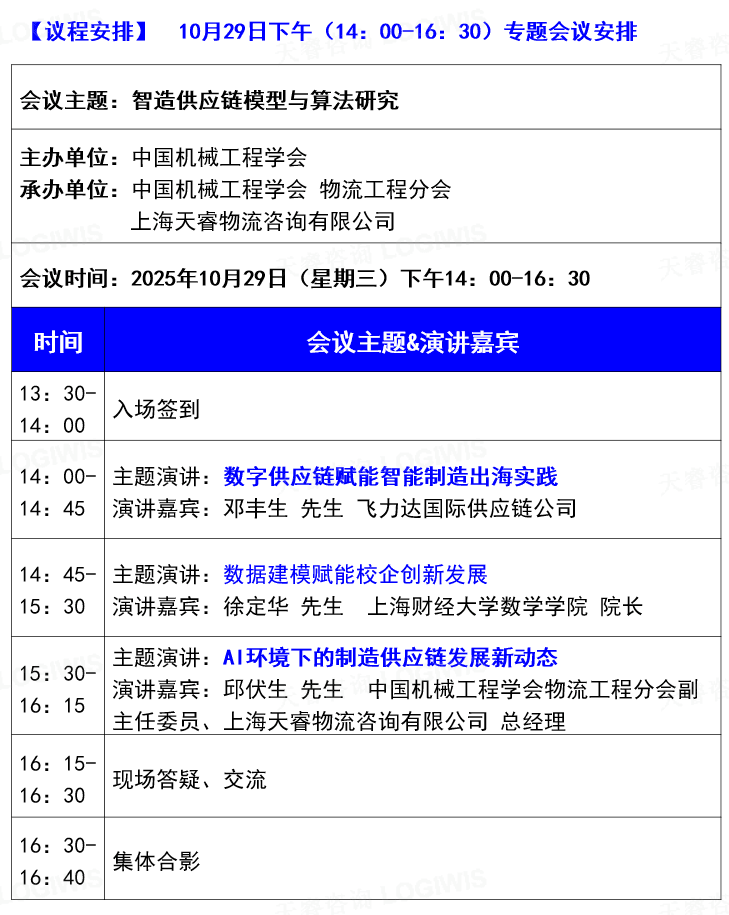 2025年10月29-30日两日会议议程如下【参观限额50人,先到先得】: