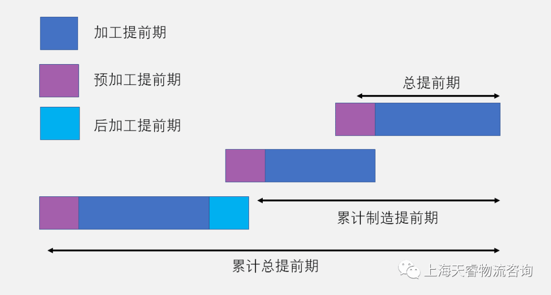 **提前期(Lead time)是指某一工作的工作时间周期,即从工作开始到工作结束的时间,提前期的观念主要是针对"需求"而提出的。**产品、零件和物料提前期的作用是生成MPS、MRP和采购计划的重要数据和依据。因此,采购订单的传输频率和生产计划时段要适合全部零件或商品的提前期。