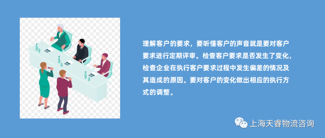 **理解客户的要求,要听懂客户的声音就是要按企业规定的沟通流程进行操作。定人、定频率、定情形进行沟通交流。**在大多数时间里,这些信息是能够听懂的,客户的要求也能了解的,因此也是绝大部分供应链管理者的实操情况。**但在某些时候,客户的信息会发生差错,有时有着明显的不真实,如果还按部就班执行,也会影响客户的交付和企业的运营。**有的管理者已经发现了问题,还是按客户提供的信息操作,结果发生了偏差,造成了事故,唯一的好处就是当事人无需承担任何责任,因为信息是客户提供的,操作是按规定做的。