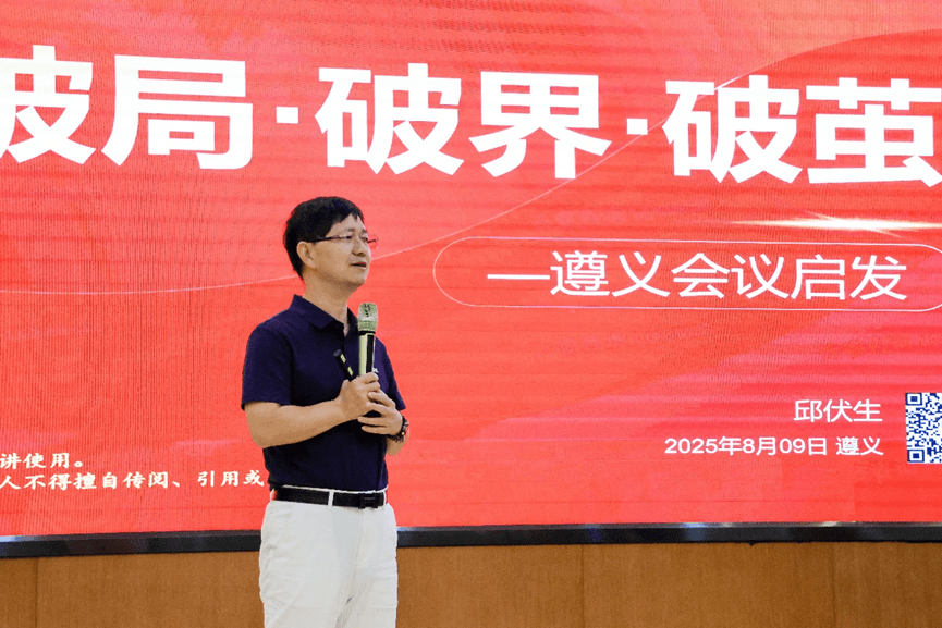 紧接着,由天睿总经理邱伏生先生带来“破局、破界、破茧”的主题培训。邱老师从天睿的含义和历程出发,回顾了天睿二十多年走过的足迹,再从遵义会议的启示与精神出发,强调**统一思想,行动一致,坚持天睿自信,拥抱AI,用系统化的思维思考和解决问题,运用数学原理简化问题,牢记初心,以客户为中心,以方法论为纲,**敢于打破旧观念、突破思维局限,躬身入局,积极拥抱新事物,学习AI与算法,开辟新赛道。