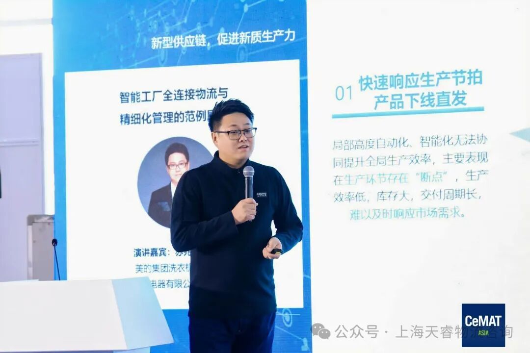 美的集团洗衣机事业部,无锡小天鹅电器有限公司,工厂总经理苏兆宇先生,分享“智能工厂全连接物流与精细化管理的范例展示**”。**苏兆宇先生以24年10月,美的集团荣获的2024年度“机械工业科学技术奖”科技进步奖一等奖项目作为案例展开,从项目背景、总体思路、主要技术内容及创新点、主要技术经济指标先进性、知识产权情况、应用推广和经济社会效益、推动行业作用和意义,七个方面展开详细阐述,分享智能工厂从无到有,从对投资忐忑不安到实现优秀的盈利表现。内容非常丰富,其中工人技能管理系统注重人机结合,让人耳目一新。