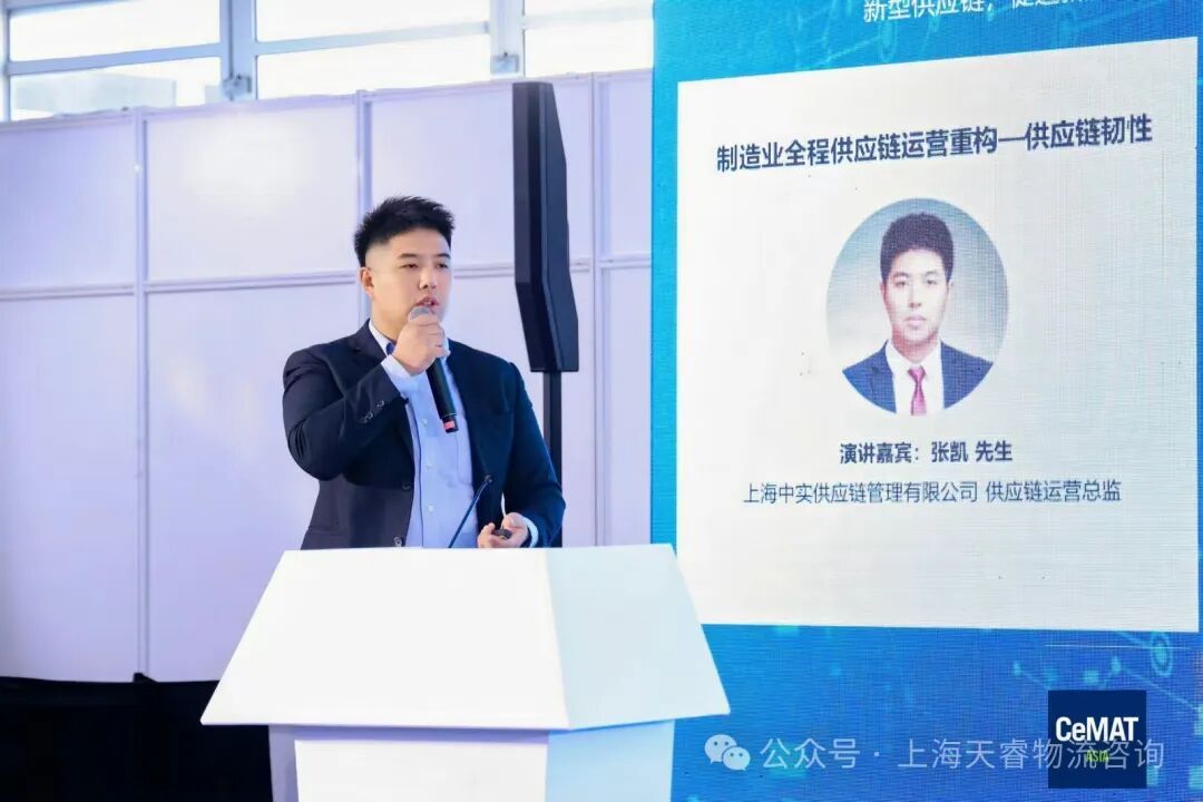 中实供应链管理有限公司供应链运营总监张凯先生分享“制造业全程供应链运营重构-供应链韧性”,从供应链蜕变——从传统物流到Smart log,从“管人”到“管机器人”;供应链重构——-新模式,新体系;供应链重构——新技术,新成本,流程优化,算法升级,降本增效,三个方面解读制造型企业应如何加强自身供应链韧性。