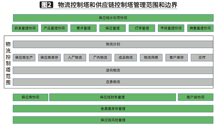 “供应链控制塔”是一个共享服务中心,负责监控和指导整个端到端供应链的活动,使之成为协同的、一致的、敏捷的和需求驱动的供应链。这是一个庞大的数据集中和分析中心,也是整个供应链体系的调度和协同中心。通过供应链各环节数据的采集,由供应链控制塔设定的既定逻辑进行大数据的分析,一方面,能够输出供应链过程指标和结果指标的实时动态;另一方面,以大数据分析为基础,能够实现对过程风险的自动预警,并且输出“自补偿、自调适”的指令,必要时通过控制塔进行快速的人工干预调整。