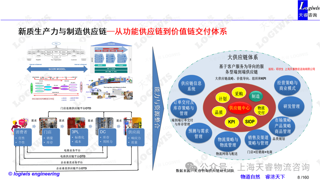 **(2) 供应链价值传动系统:**这一部分关注于价值的流动和传递。它确保供应链中的每一环都能有效地贡献并传递、获得价值,从原材料采购到产品制造,再到最终的销售,每一步都是价值增长的过程,解决的是路径问题。
