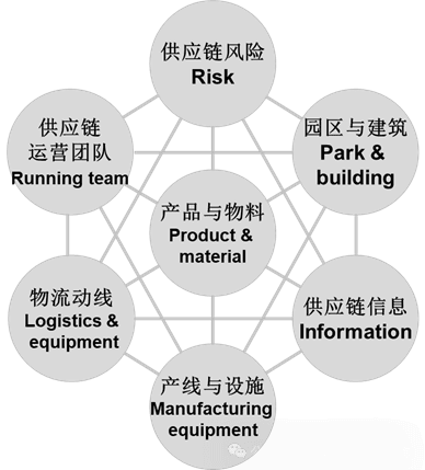 这些子系统围绕价值愿景、战略方向、绩效达成、技术支撑与赋能、智能制造、订单、产品与制造物料流动/交付系统为中心,互为前提、相互促进,起始于规划和规则,成就于运营。其中供应链工程技术系统解构供应链策略与绩效要求,同时赋能与监控智能工厂供应链作业系统,形成闭环反馈和良性循环。供应链系统是智能工厂建设与运营的灵魂,需要在智能工厂规划的时候,先期定义,并将其逻辑全程贯穿到智能工厂规划和建设中。在智能工厂园区与建筑、产线与设施、物流动线与设施通常在物理平面布局图中容易呈现,产品与物料、供应链运营团队、物流与库存信息、供应链运作动线和供应链风险通常在运营过程中才能体现。如图2所示。
