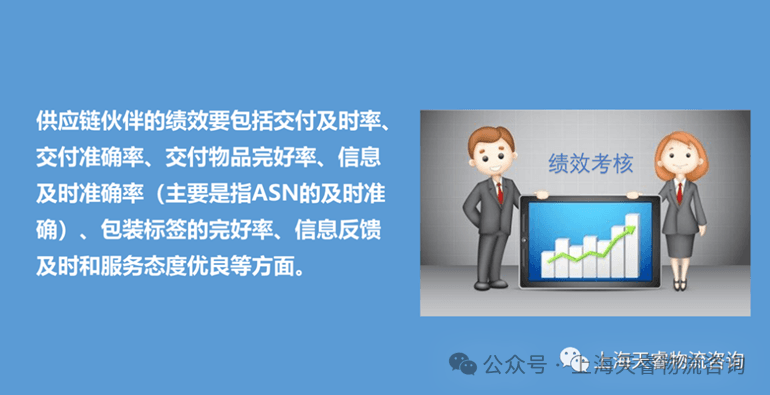 一、供应链伙伴的绩效评估文件。绩效评估是供应商管理的主要内容之一,是反映供应商的交付成绩和服务质量的重要标准和依据。供应链伙伴的绩效要包括交付及时率、交付准确率、交付物品完好率、信息及时准确率(主要是指对MRP计划的反馈和ASN的及时准确)、包装和标签的符合率和完好率、信息反馈及时和服务态度优良等方面。把绩效罗列出来后,要编制计算的公式,考核的方法和奖惩的规定。在听取其他部门和供应商的意见后,通过规定的文件批准流程,形成正式的文件。不能忽略的是,该文件必须发给供应商,并要求该企业的高层领导进行签收。