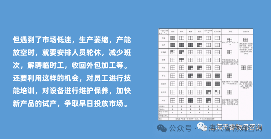 但遇到了市场低迷,生产萎缩,产能放空时,企业会减少班次,解聘临时工,收回外包加工等。还会安排人员轮休,这时在一些采用“工时平衡制”的企业会用轮休来抵消原先都加班,从而减少加班费都支出。当然,员工都收入也会随之减少。企业更要利用这样的机会,对员工进行技能培训,对设备进行维护保养,加快新产品的试产,争取早日投放市场。总之,对人力资源的平衡是一门学问,需要进行深入的研究。