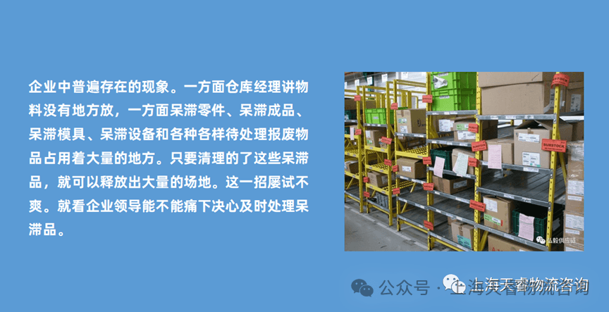 一、提高场地的利用率,就要看场地是否被呆滞品占用着。这是企业中普遍存在的现象。一方面仓库经理讲物料没有地方放,一方面呆滞零件、呆滞成品、呆滞模具、呆滞设备和各种各样待处理报废物品占用着大量的地方。只要清理了这些呆滞品,就可以释放出大量的场地。这一招屡试不爽。就看企业领导能不能痛下决心及时处理呆滞品,不过能够做到这一点的企业并不多。于是,可以动脑筋对这些物品重新包装,合理放置。如废旧设备好磨具等,可以牢固包装后进行叠放,呆滞品因为难得使用可以放置在高处或者可以利用却不方便拿取的地方。甚至有一家企业在外面专门租了一个租费很低的仓库放这类物资。但千万不能因为这样做而遗忘这些物资。建议把这类物资的清单要放在仓库和物流部门领导很容易看到的地方或者醒目的场所,时刻提醒相关人员不要忘记尽快处理。