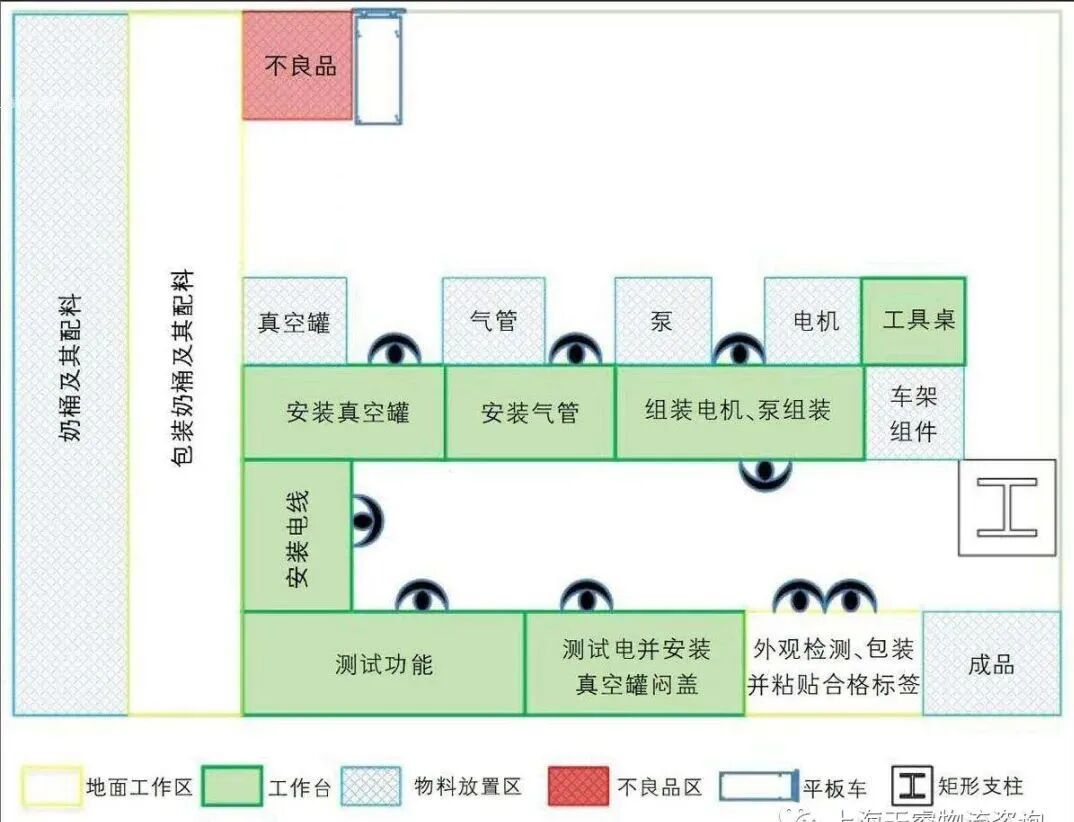 MMOG中的5.2.3.4 F1组织物料流通设计能够尽量减少处理和运输(比如:单件流、单元式制造、循环取货的使用、集中装运)。物料的流动中企业供应链成本中占了较大的比例,有的因金额较大而被供应链部门所重视,但有的却因流程较短,被认为对成本降低帮助不大而被忽视。在实际运行中往往许多短流程的改善会带来降本的大惊喜。