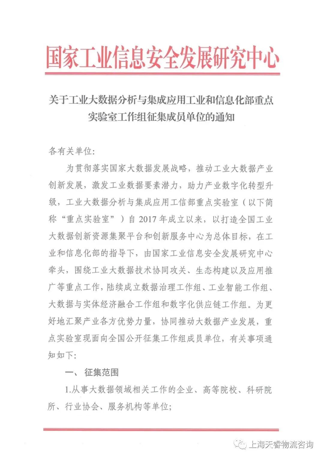 工业大数据分析与集成应用工业和信息化部重点实验室(以下简称:重点实验室),以打造全国工业大数据创新资源集聚平台和创新服务中心为总体目标,在工业和信息化部的指导下,由国家工业信息安全发展研究中心牵头,围绕工业大数据技术协同攻关、生态构建以及应用推广等重点工作,陆续成立数据治理工作组、工业智能工作组、大数据与实体经济融合工作组和数字化供应链工作组,重点实验室面向全国开展了工作组征集工作。