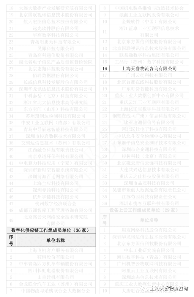 上海天睿物流咨询有限公司**(以下简称:上海天睿物流)成功入选数字化供应链工作组。其中,数字化供应链工作组成员单位有****上海飞机客户服务有限公司、****鞍钢股份有限公司、****中车青岛四方机车车辆股份有限公司、****四川长虹电器股份有限公司、**山重建机有限公司等36家单位,*后续将会在重点实验室的组织下,与成员单位开展数字化供应链*协同攻关。