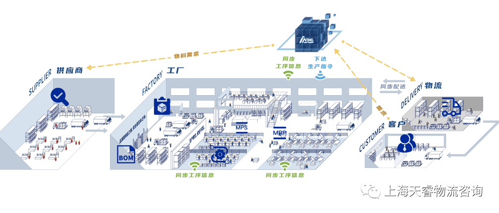 **如果要达成这个条款,就存在着一个企业系统与供应商系统同步的问题。企业一般采用EDI系统来向传递自己的预测和需求,供应商也通过自己的系统来接收客户的信息和订单。**当企业或者供应商接收来订单和预测后,会根据自己的产能和资源条件,采用MPS制定本企业的生产计划,采用APS进行生产排程。下游客户的预测和订单是滚动发布的,企业也是随着客户的需求滚动编制自己的生产计划和排程。同样,也通过EDI系统将自己的预测和订单滚动发给上游供应商,供应商也是照此编制自己的生产计划和排程。随着时间的推移和数据的积累。客户的订单数据不断地输入企业,加之企业本身运营数据,形成企业生产计划的参数。在实践过程中不断加以修正,逐步实现同步化运行。同样,供应商对生产排程对顺序也是根据他们客户对计划展开和落实。