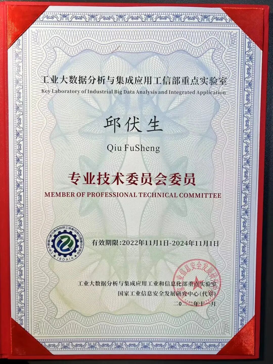 其中上海天睿物流咨询有限公司,首席顾问邱伏生先生,荣获“工业大数据分析与集成应用工信部重点实验室专业技术委员会”代表成员。