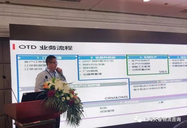 随后,原华晨宝马汽车有限公司物流流程开发及战略规划经理韩佳辰先生,从汽车供应链OTD过程、汽车OTD信息系统架构、汽车物流供线现场智能化应用三个方面对“智能物流供线现场应用”进行主题分享。指出新应用技术在运行管理中要协调好资源调度、工作流管理和驱动管理三者之间的关系。
