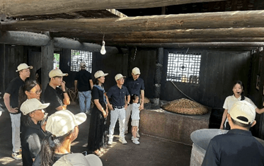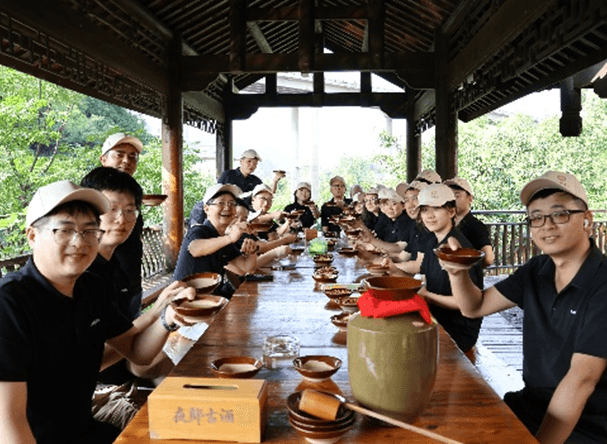 团建1:参观夜郎古酒厂,全面品味茅台镇独有的**"九次蒸煮、八次发酵"的酱酒工艺**,领略中国文化“忠孝节义”的千年传承,并封坛留存。