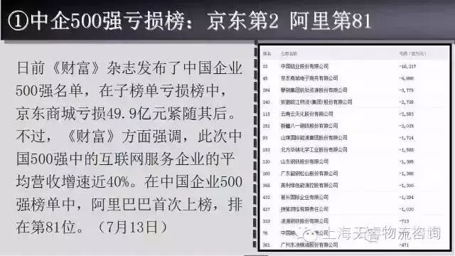 ①中企500强亏损榜:京东第2 阿里第81②一号货车获数亿融资,DCM领投、红杉资本跟投③顺丰和Uber开始