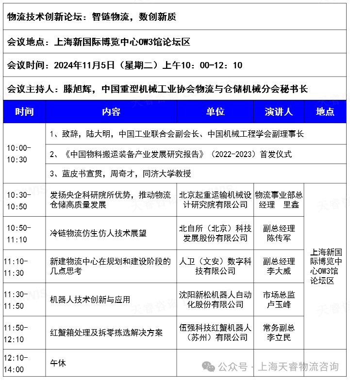 11月5日上午场,“智链物流,数创新质”物流技术创新论坛聚焦于物流技术的创新与应用,将探讨物流系统的智能化升级技术、供应链的协同与整合、以数据为驱动的高效管理模式、物流装备行业在数字化转型和创新驱动下的新趋势和新要求。