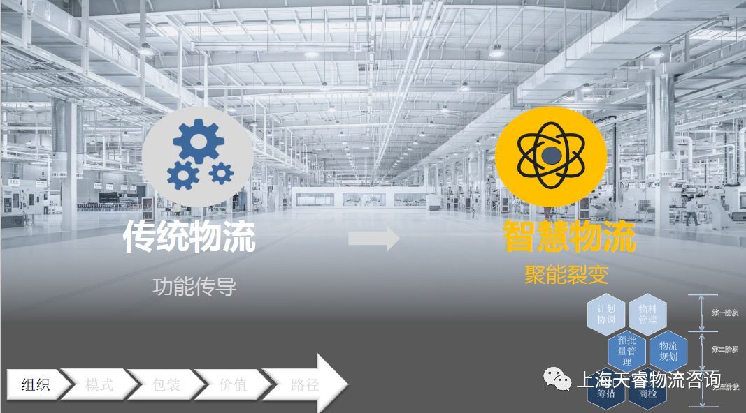第二条:物流模式的转变,传统物流模式简单,例如入厂物流更多以直送为主,智慧物流则强调多种物流模式的共存发展,如Milk-run 模式,VMI 模式,联合厂房方式等等。