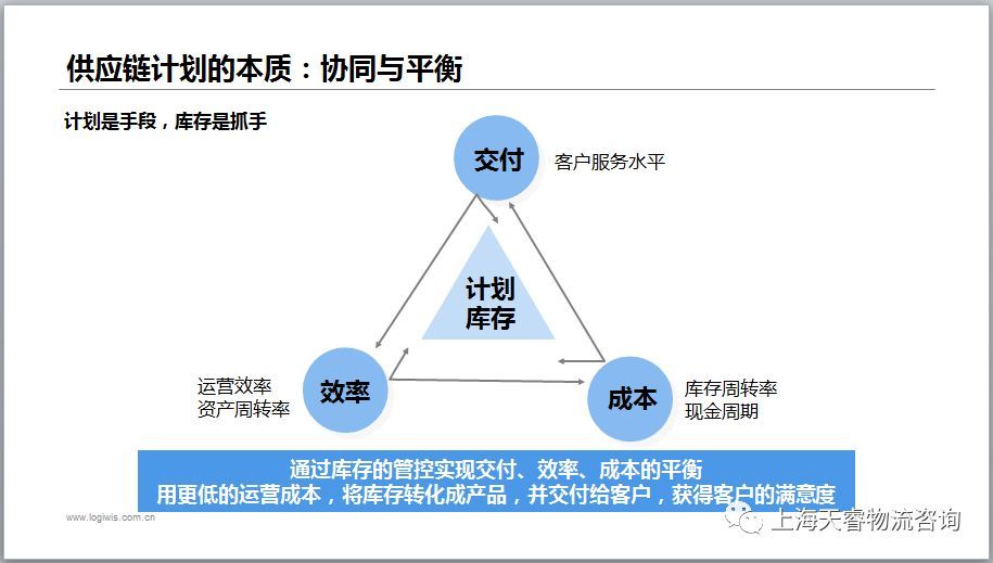 · 供应链管理的本质是协同和平衡,强调供应链计划是供应链管理的核心与灵魂,搭建供应链计划与产销协同机制,需要从战略入手,横向、纵向拉通、协同与同步,从周产销、月产销和季产销等做好协同。同时提出做好供应链计划的六大前提是:1.思维方式的转变 2.要有明确的蓝图规划 3.抓基础、建规则 4.需求管理是源头。5.以库存为抓手 6.信息共享、过程透明。