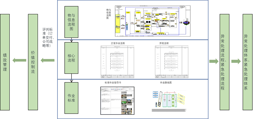 **首先,建立物流标准化流程体系。**将物流各环节核心流程进行梳理、优化和固化,建立流程框架,形成流程文件,编制各环节的操作指导书、作业路线图、指示图、指令表单等,“有人操作的地方就有标准可依”。相关的标准流程文件比如:《物流各环节操作指导书》、《物流各环节质量检验标准》、《极限样件手册》、《物流路线图》《物资交接单据》、《各环节点检表单》等。