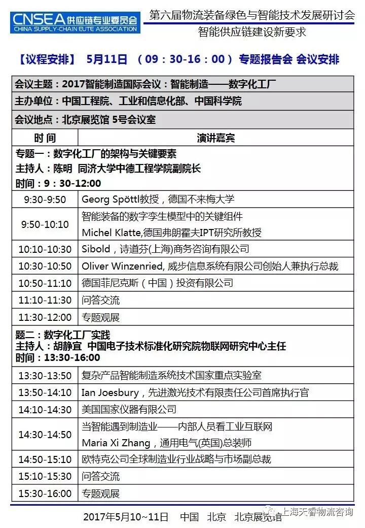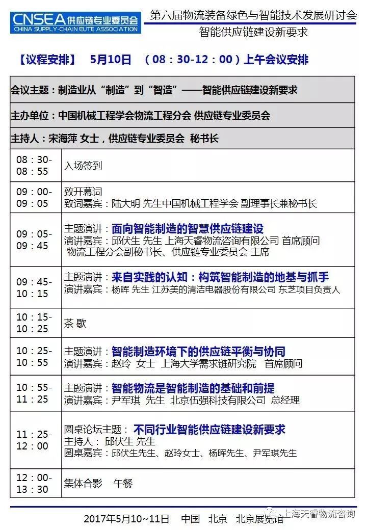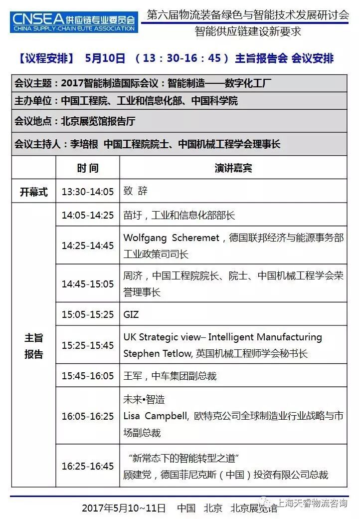 天睿观点 2017年5月10日 · 约 1-2 分钟阅读 【指引】2017年5月10-11日制造业从“制造”到“智造”——智能供应链建设新要求研讨会 天睿咨询 结论摘要 复制 2017年5月10-11日制造业从“制造”到“智造”——智能供应链建设新要求研讨会,内含会议议程、会议地点、用餐地点 一、会议议程 二、会议地点 三、用餐地点 参考资料 [1] 2017年制造业智能供应链建设新要求研讨会会议资料 — 上海天睿物流咨询有限公司 上一篇 为何说未建厂房前资深规划师名言“一句话,价值一千万” 下一篇 制造企业供应链应该修炼的五项能力 ——家居制造企业的“修真之路” 天睿观点