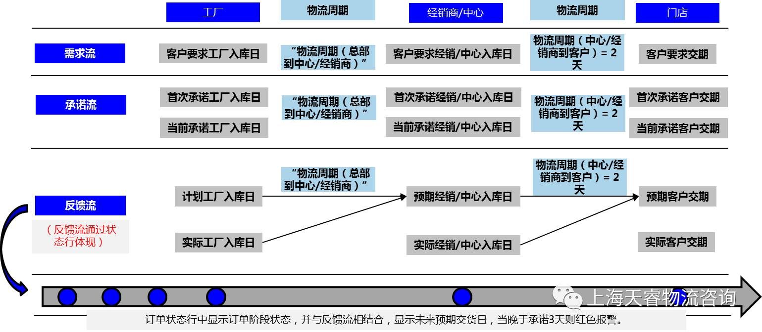订单“三流”管理致力于实现订单从客户需求(需求流)、企业承诺(承诺流)、实际发生(反馈流)的三种信息在供应链端到端的传递、共享、透明,以便于对订单执行各个环节进行有效监控,从而起到订单异常预警的作用。同时也能更好地将订单的状态和预计状态呈现给各个供应链环节、客户乃至供应商,以实现供应链通路上管控的预防性、有效性、及时性。