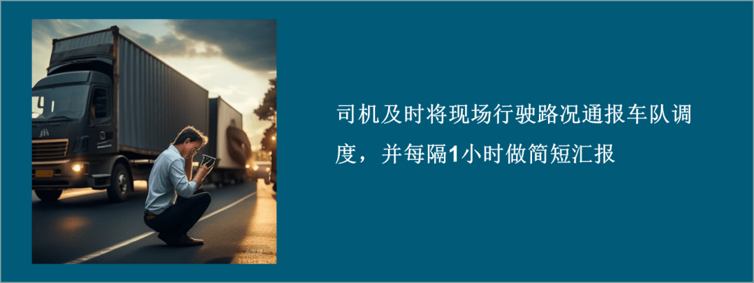 (1)司机及时将现场行驶路况通报车队调度,并每隔1小时做简短汇报;