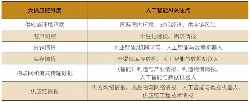 表1 人工智能AI赋能新型制造供应链的关注点